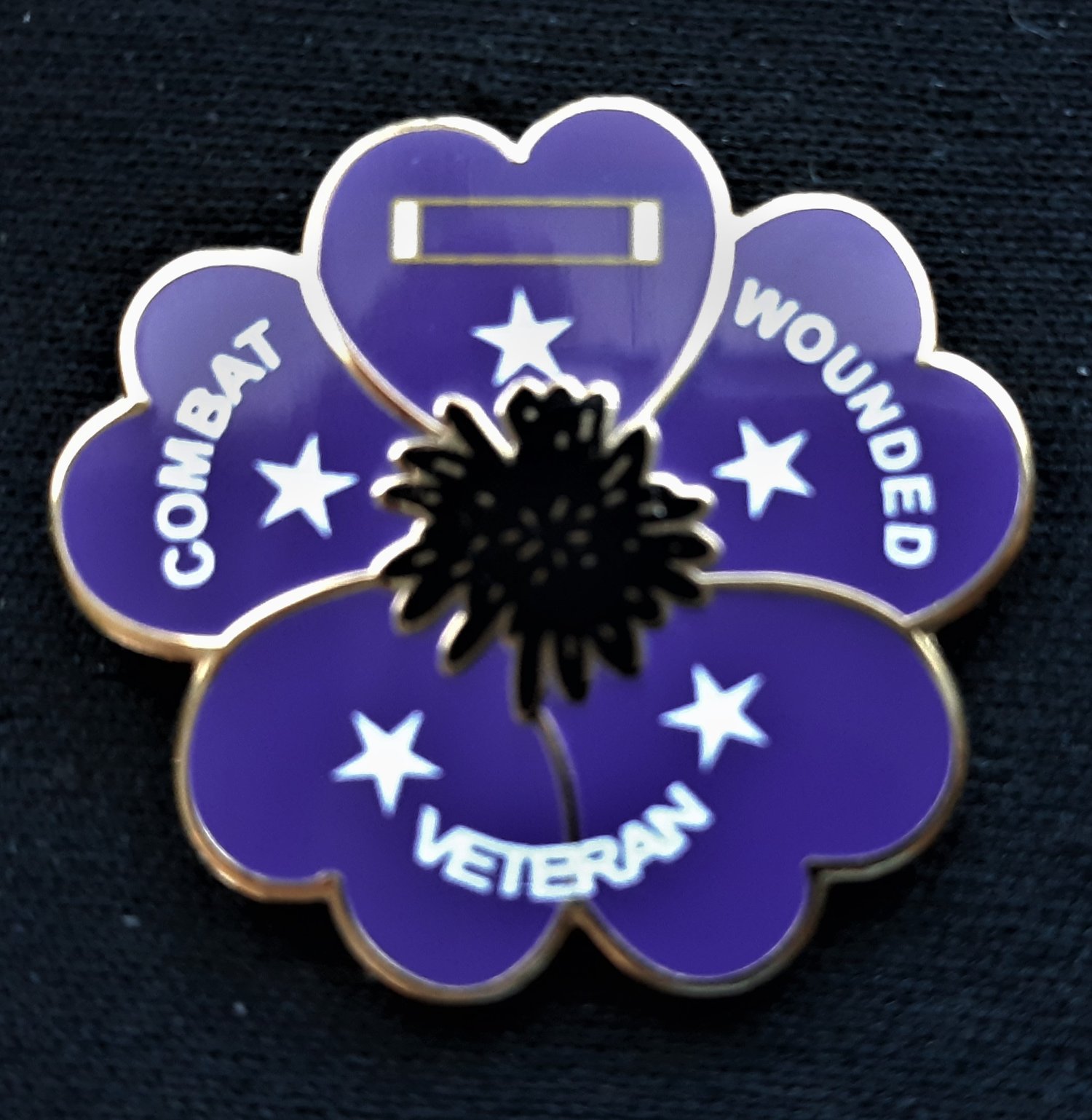 We celebrate both Veterans Day and Memorial Day and we purchase a poppy. But, everyday should be Veterans Day and we should honor our veterans every day, especially our Combat Wounded Vets. That's why I designed the Purple Heart Poppy. As shown it is 1.25" in diameter with 2 posts on the back. The text says it all. The 5 stars represent each branch of service. Shipping is to US only